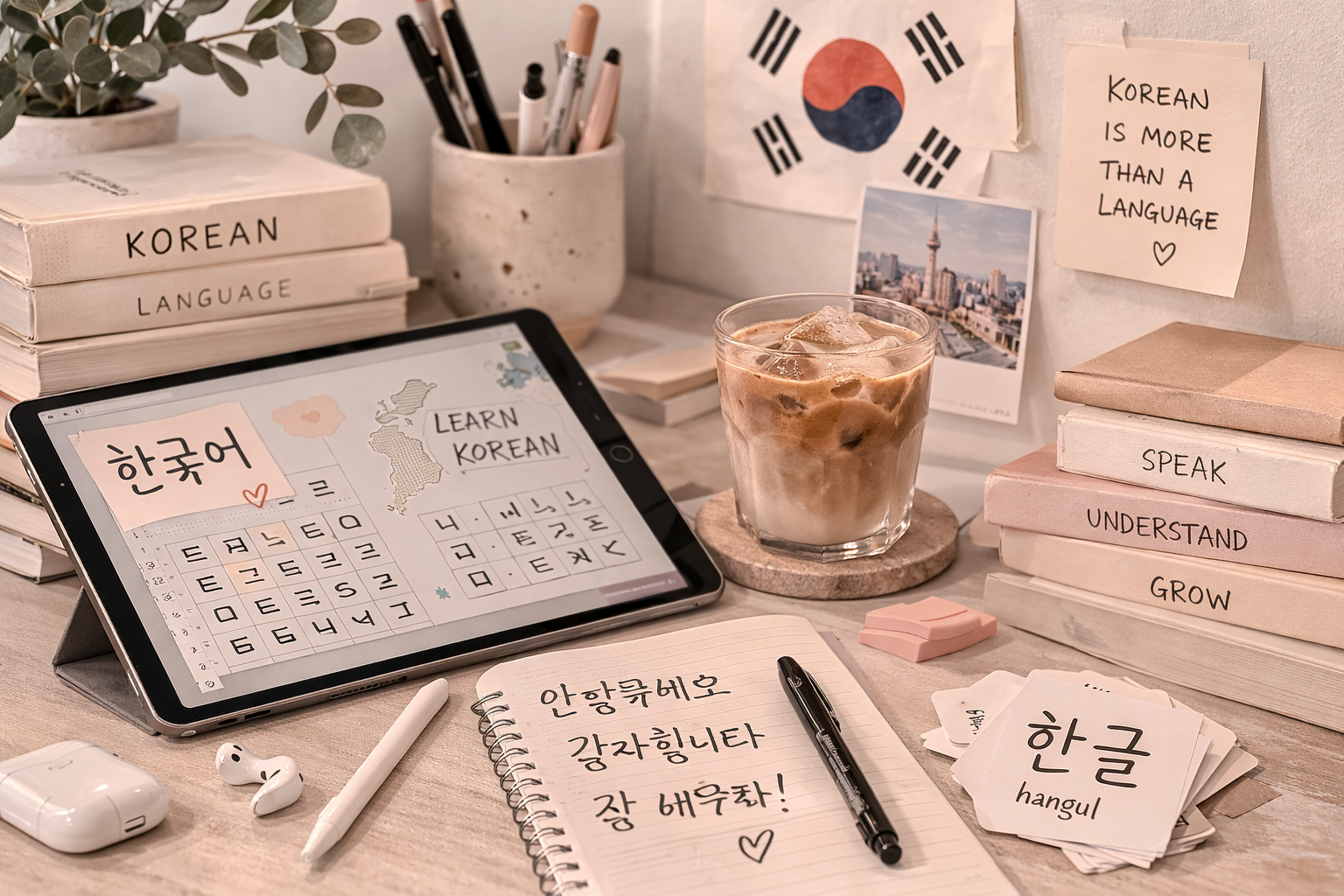 From Hangul basics to practical phrases and everyday usage.